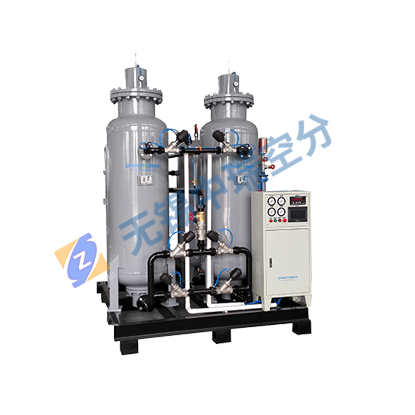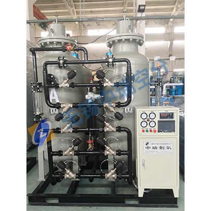 變壓吸附制氧裝置以潔凈的壓縮空氣為原料,沸石分子篩為吸附劑,利用變壓吸附的原理在常溫下來獲取氧氣。根據(jù)空氣中氧、氮在沸石分子篩表面的吸附量的差異及氧和氮在沸石分子篩中的擴(kuò)散速率不同,通過可編程序控制器控制氣動(dòng)閥的啟閉,實(shí)現(xiàn)加壓吸附、減壓脫附的過程,完成氧、氮分離,得到所需純度的氧氣。